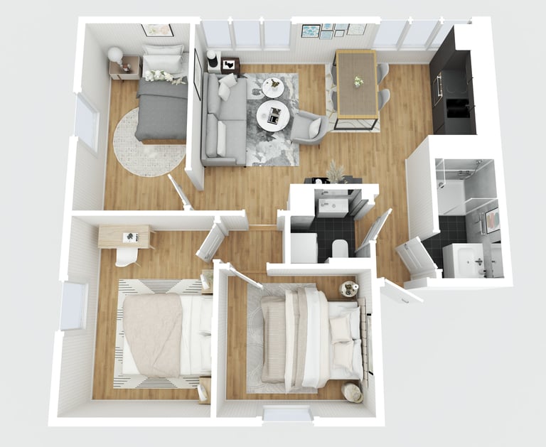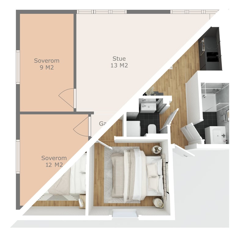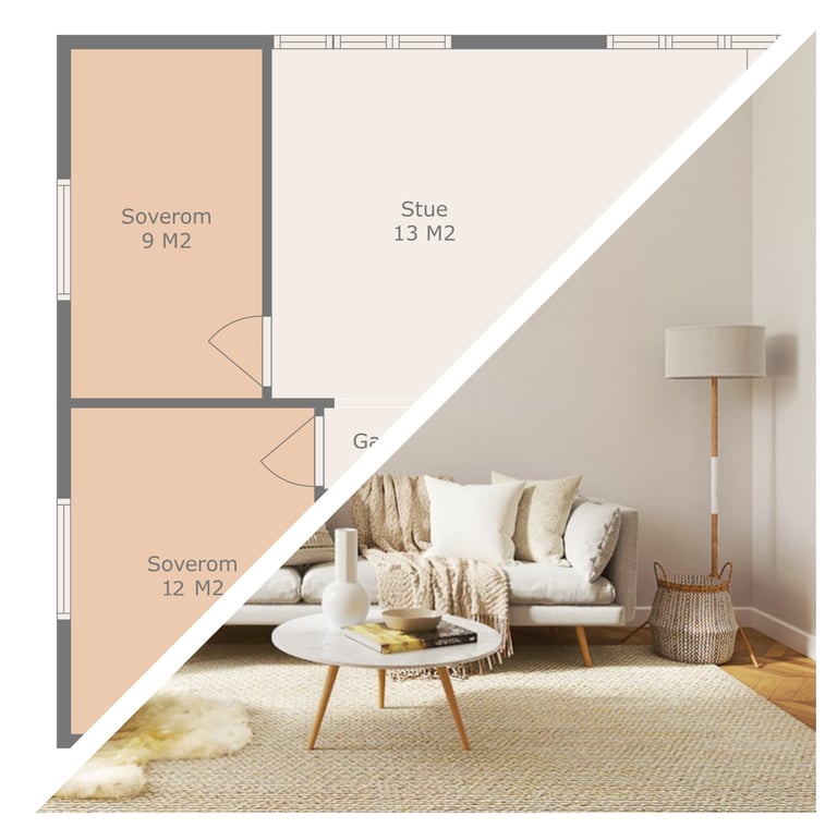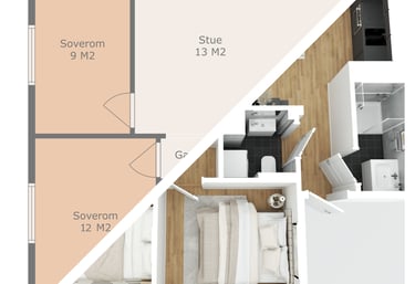 Gjør det enkelt for interessenter å visualisere romoppsett og potensialet i eiendommen. Vi tilbyr både 2D og 3D-planløsninger.