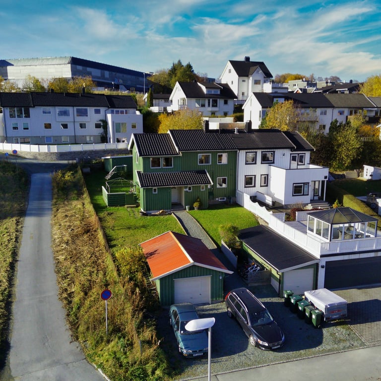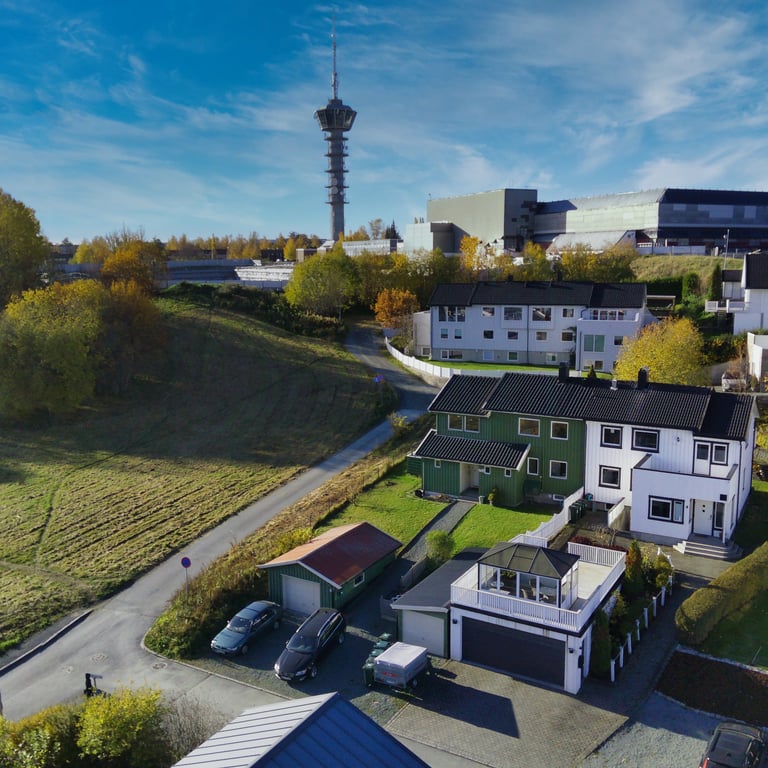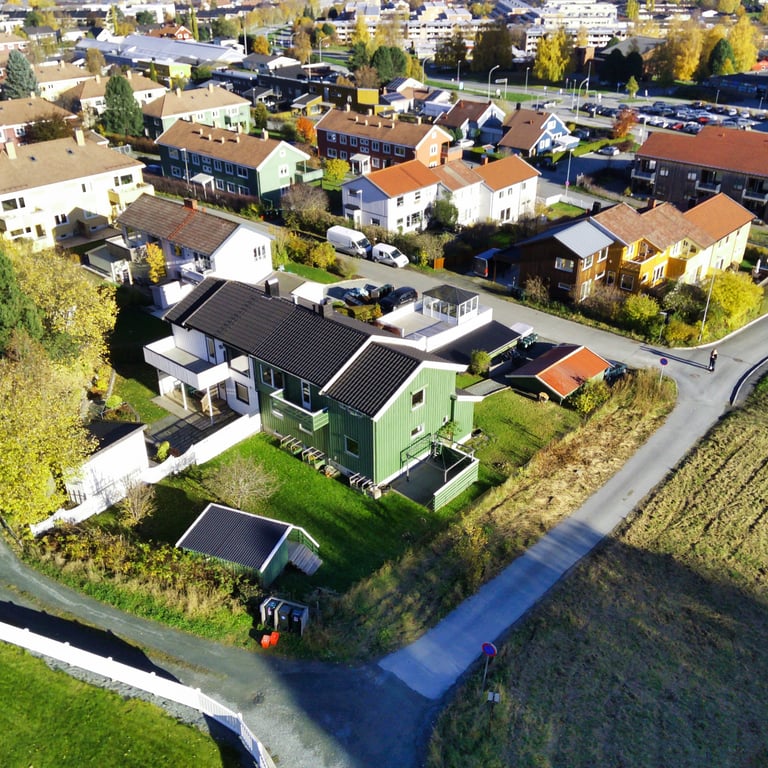 Drone er et fantastisk verktøy for å fremheve boligens beliggenhet på en oversiktlig måte. Det er derfor et kraftig virkemiddel i markedsføringen av boligen da nærområdets kvaliteter kan ha stor innvirkning på både interesse og prisoppfatning.